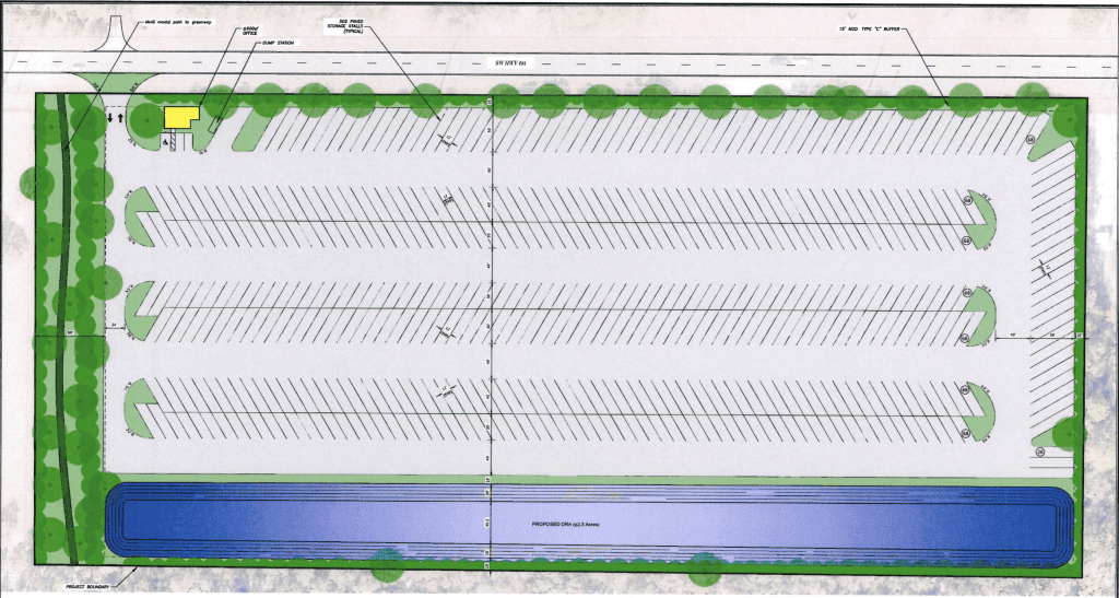 Site Plan from the applications. The proposed parking lot had more vehicle storage capacity than the Gainesville Airport.
