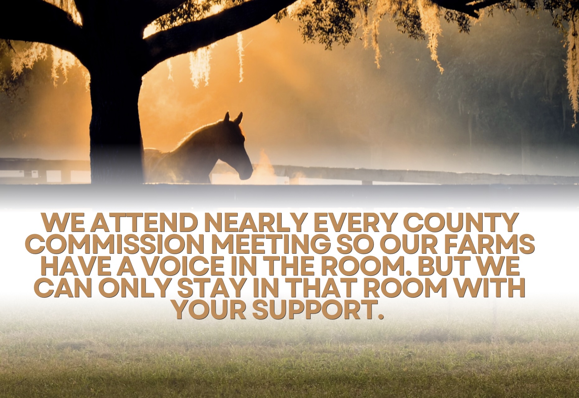 Horse Farms Forever was founded in 2018 with a simple belief: that protecting this land required someone to show up, stay engaged, and refuse to back down. Since then, we have attended thousands of hours of County Commission meetings. We have reviewed development applications, challenged comprehensive plan amendments, and fought back on projects that would have permanently altered the Farmland Preservation Area.